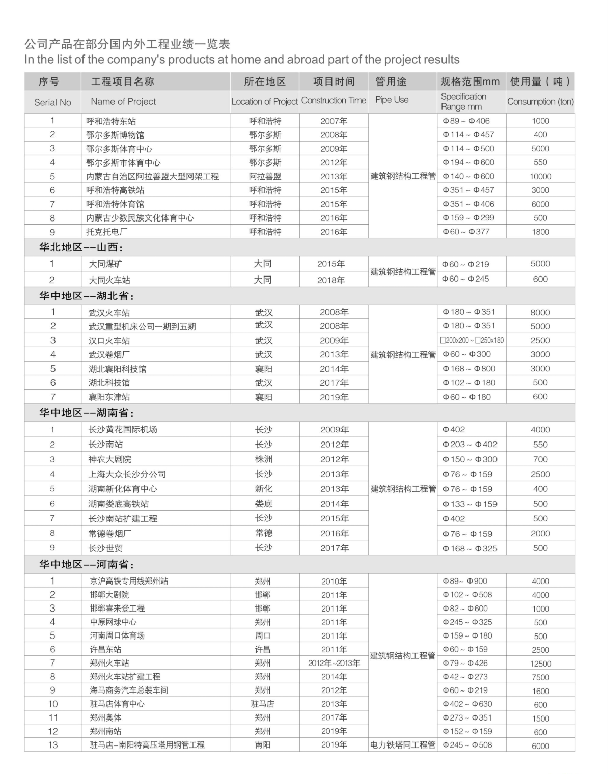 業(yè)績(jī)一覽表
